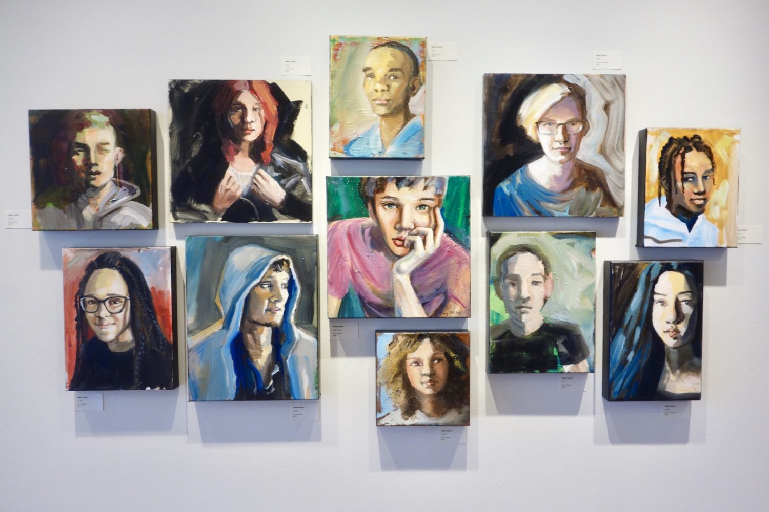 Clifton Springs is only 55 cents away on the NYS Thruway. Our passengers, Pete and Gloria, paid the toll and provided the kind of conversation that makes time fly. The shows at Main Street Arts, in the center of this restored town, are consistently good. “Perception of Time,” a group there now is a case in point. I liked Nancy Wiley’s loose, painterly Generation Z portraits, particularly the second one in from the bottom right. Wiley apparently likes this one too because she shows it in the catalog for the show along with this statement. “I have been struck by the struggle many of them go through to be authentic and honest about who they are as individuals, often challenging old social norms.”