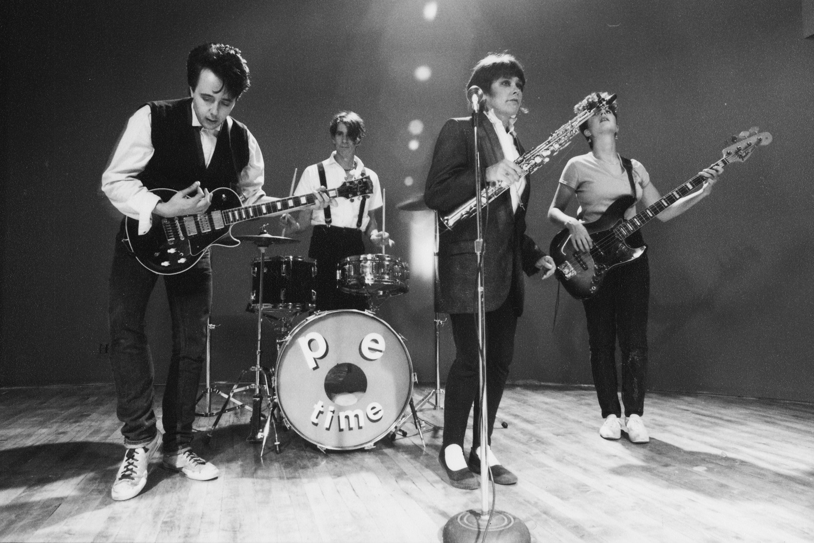 Promo photo of Personal Effects by Chris Maggio. Bob Martin – guitar, Paul Dodd – drums, Peggi Fournier – sax, and Robin Goldblatt Mills – bass guitar.