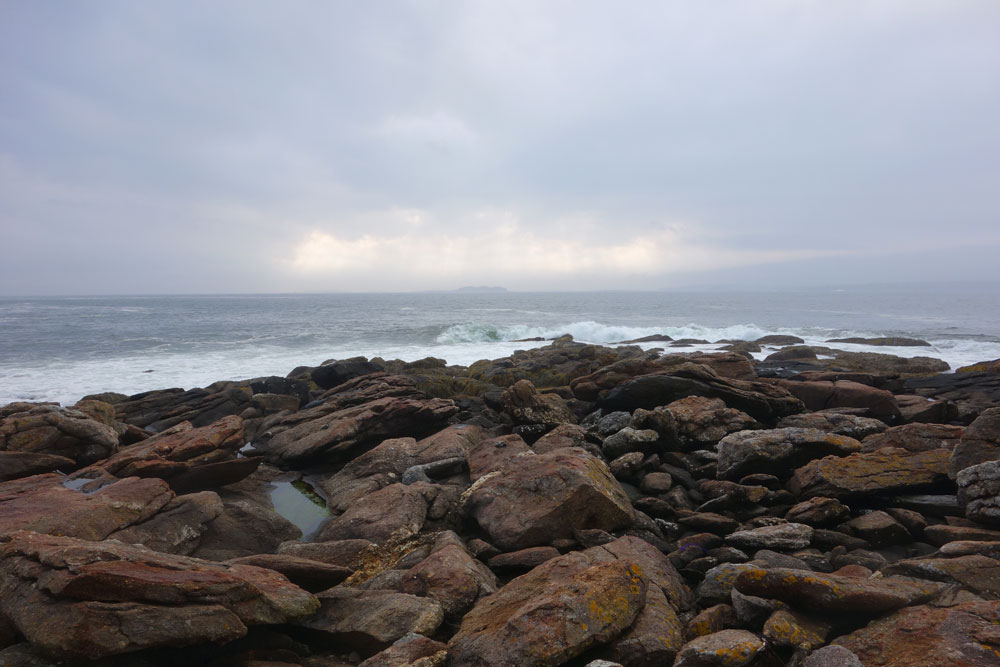 When we arrived at Alice and Julio’s on the coast of Maine we waisted no time in organizing a walk. Hopping from one rock to the next and stopping to study the infinite variety of rocks and minerals, the washed up lobster traps and buoys, the monstrous waves and swelling sea, the spectacular, ever changing views of the islands or engaging in divergent conversations on all matters we filled the the rest of the day in spectacular fashion.