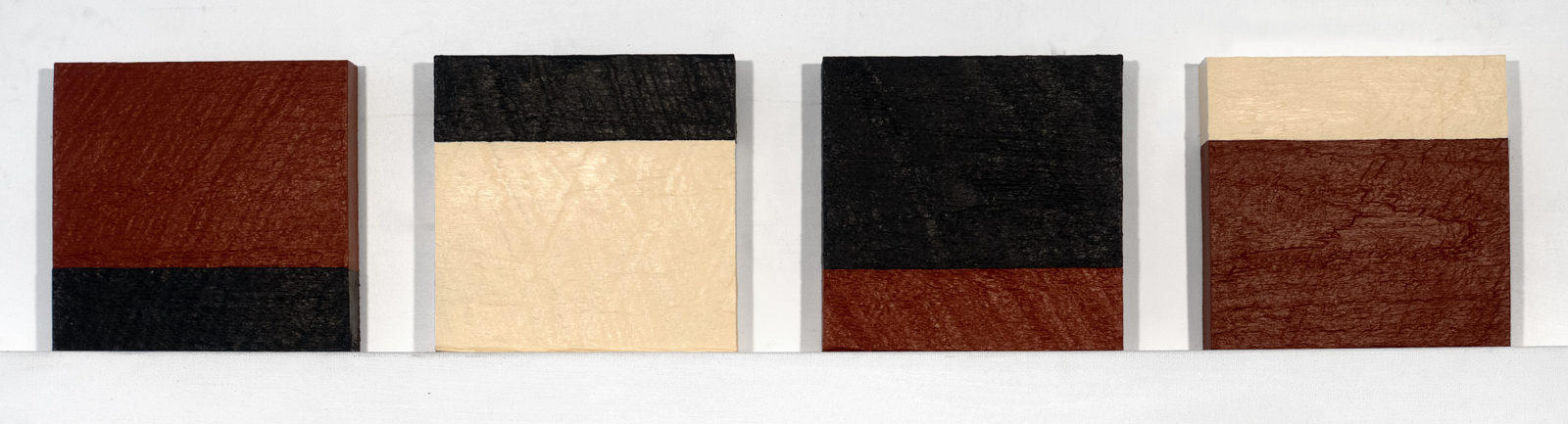 I heard that Rochester Contemporary was going back to allowing four entries in their upcoming 6×6 exhibition. They started with ten, reduced the limit to four and then held it at three for the last few years. I was having with this wood motif during those four years. I needed four to work the mathematical variations and then I did variations on those for six years. When they switched their limit to three I entered smashed beer cans in protest.