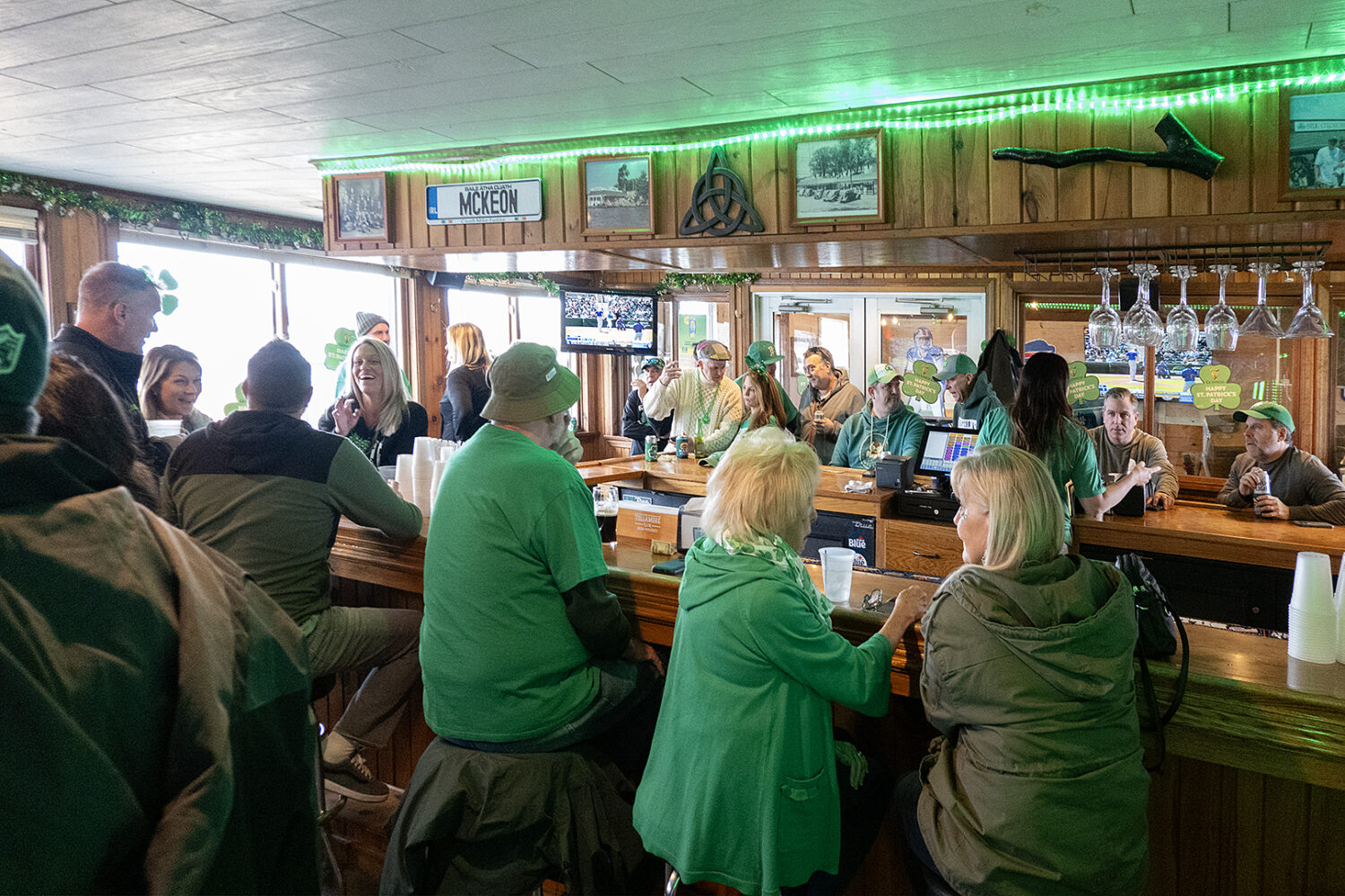 We looked in the new Fifth Frame Brewing on the way back. Surprised it didn’t open til four when all the other bars were full. We ran into Diane White walking her Basset hound. When we lived in the city we would go down to Carroll’s on St. Patty’s. Once we moved we did Shamrock Jack’s for years. Then that got crazy. The monster tent in the parking lot and bus loads of partiers and then the five and then ten dollar cover charge. We moved on to the Bayside. It was a nice walk across the outlet bridge. But then Webster decided to improve that area by tearing the place down.