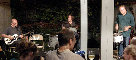 We were traveling with Rick Simpson in John Gilmore’s car last night so the night was still young when the XXI show ended. We walked into Adeline as the Tar Box Ramblers were startig their second set. We got talking to Rita Coulter at the bar and then got sidetracked at the pool table where John Gilmore was playing the night watchman from the Little Theater. When we finally got out back the bass player had set aside his stand up bass to join in on drums. The woman doing the door told us that the band reminded her of Phil Marshall. She was right. They did a nice versio of “Good Night Irene”.