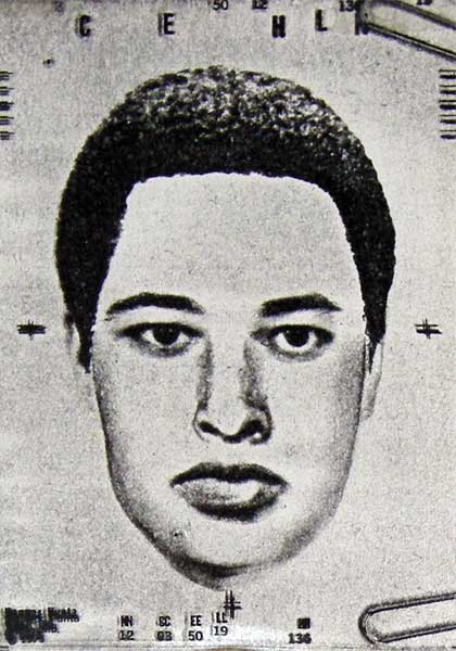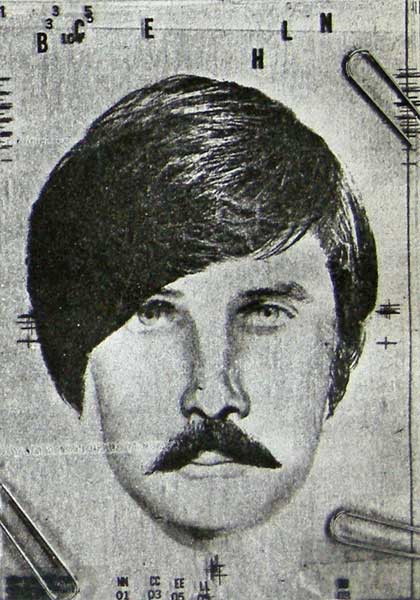 In the mid seventies I worked for the Rochester Police Department in the plain clothes division. I’ve talked about before here so there will probably be some repetition. I was hired as a graphic artist and I had access to the mugshot files. In fact part of my job entailed making fliers of suspects and in some cases I was given these goofy composites. A detective met with someone who was a victim or witness and they put together this image that was made up of clear sheets with features printed on them. So the composite was a pile of plastic sheets paper clipped together.