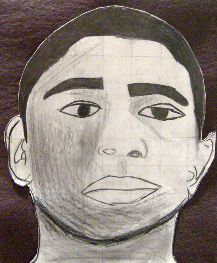 I like the idea of First Fridays a lot. I’m talking about the effort to coordinate openings on the same night of the month at various galleries around town. Bill Jones is developing a website to replace this one. We checked it last Friday before heading out. You can only take in so much. Our favorite from last Friday wasn’t even on the list and we stumbled on it on our way to see the Respect Sextet. It was a high school art show upstairs at the Village Gate. This kid, Felix Esquilin, makes it look easy.