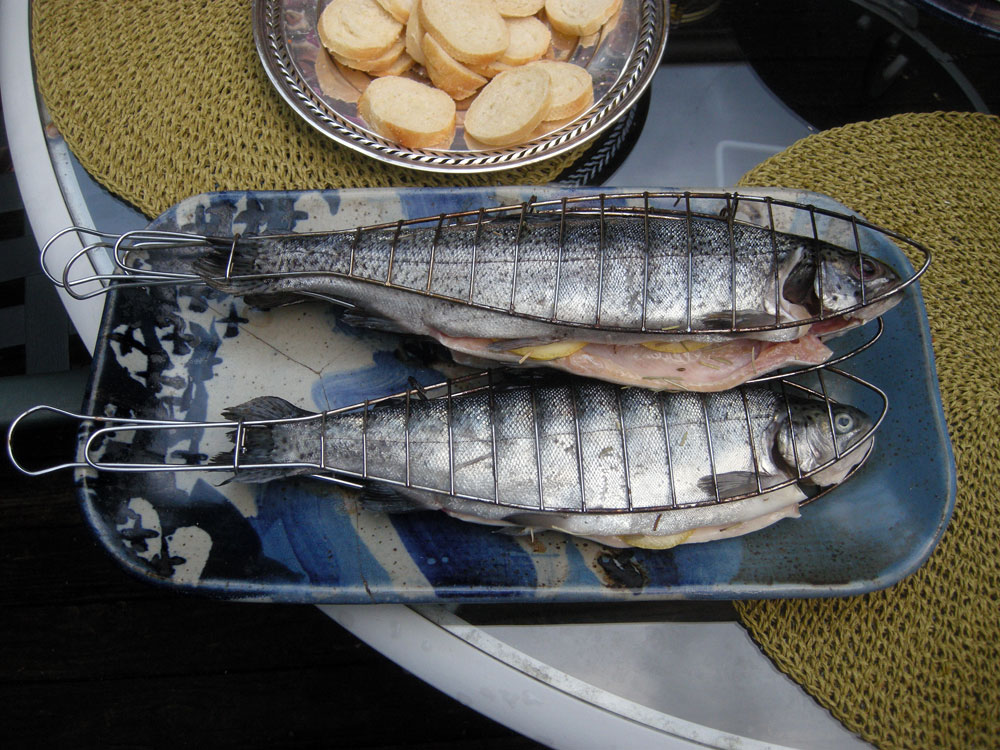 We sat out on their deck while Stuart cooked trout on the grill. Peggi and I marveled at his nonchalant barbecue style and we knew the trout would be done to perfection. Anne made a real Ceasar’s Salad and roasted potatoes. We listened to Ornette Coleman and Duke Ellington and had a marvelous time. Anne proposed a toast to Ornette, our cat, and we got to talk about how special he was. The Ornette synchronicity has been non-stop around here. When David Greenbergger was here he had a Wire Magazine with Ornette on the cover and this morning Marc Weinstein emailed us a link to an Ornette Coleman clip from 1974 with James Ulmer Blood on guitar.