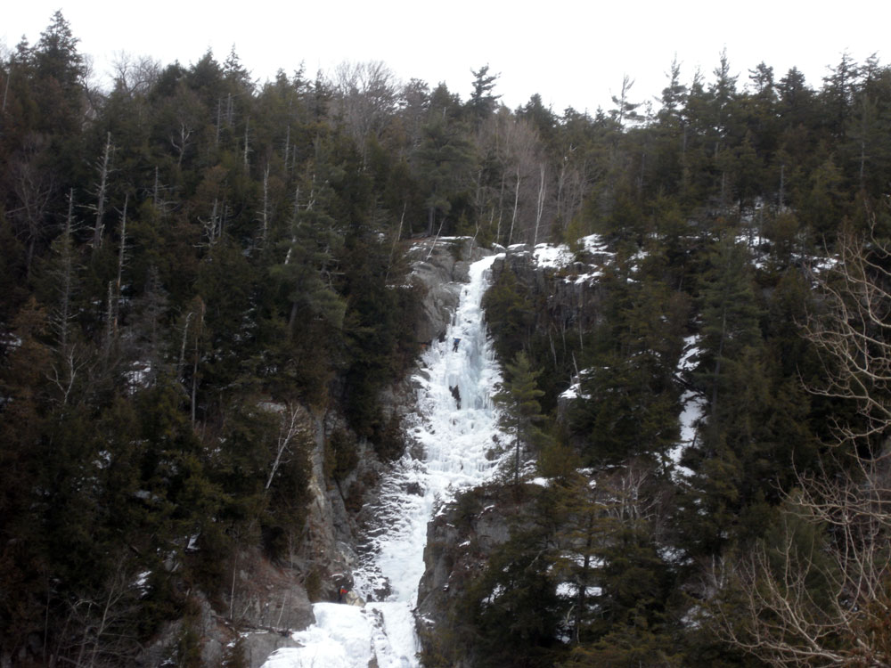 I took this shot from the driver’s seat of our car. I stopped right in the middle of the road to grab it. We were somewhere between Keene and Keene Valley, just south of Lake Placid in the mountains and I glanced up at the frozen waterfall on the mountain to our left and spotted this moving figure!
