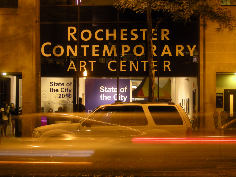 I liked what I saw of the show at RoCo and I will go back. Opening night was too distracting to take it in. Amy Casey’s painstakingly executed drawings are a delight to look at. I couldn’t quite figure out Trevor Flynn’s messy community drawings but it was fun to see people drawing on the walls. Spectres of Liberty from Troy have an interesting video in the little circular room. I was wondering if they were the same people that put up the inflated art installation at the Eastman House during Montage 93. Overall though, I couldn’t help but long for a real look at the state of Rochester, instead of the generic “city”. I am amazed at the state it is in and I’m sure I’m not alone. I think it would make a terrific show.