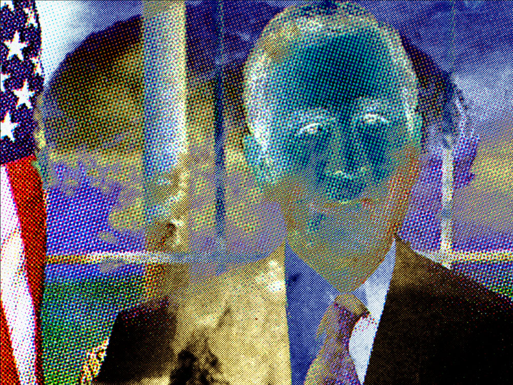 George the Second, Paul Dodd digital print of George W. Bush announcing the war with Iraq, 2010. Tom Burke bought this work at Rochester Contemporary.