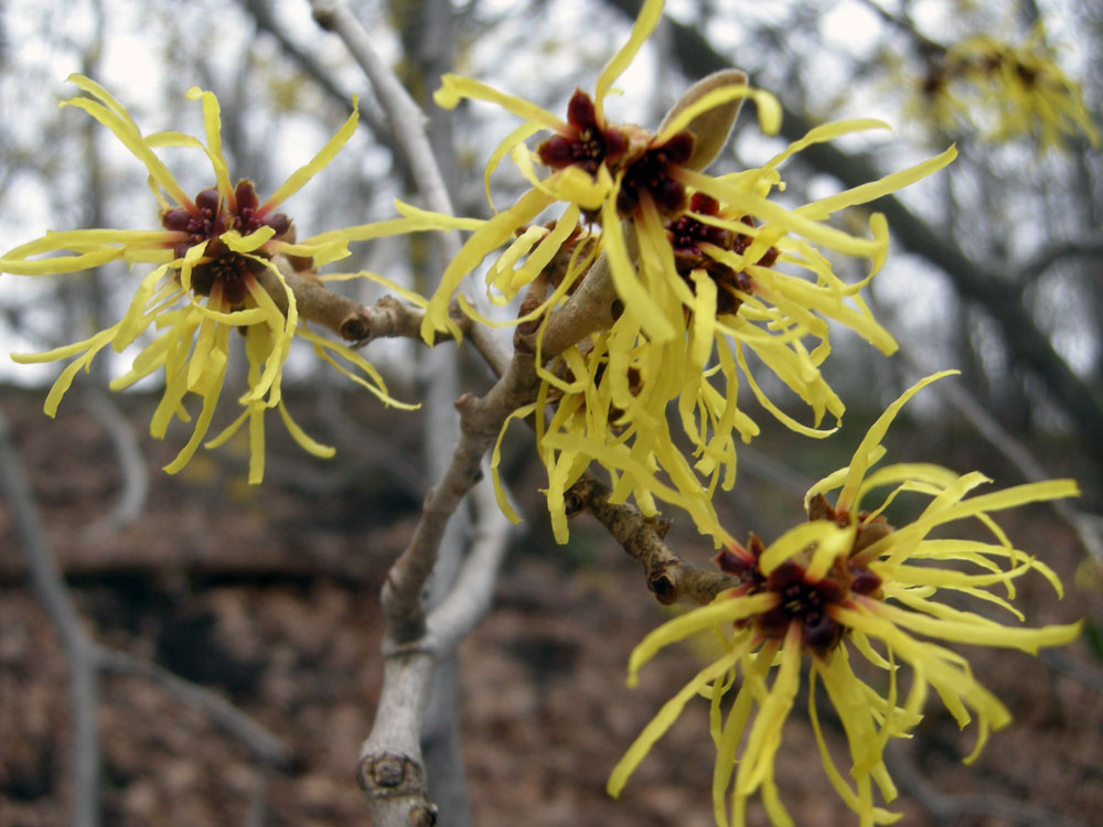 This Witch-hazel, along the road leading into Durand Eastman Park, is in full bloom now. Your nose detects it before your eyes but it but it is not as fragrant as the winter Witch-hazel which bloomed, like a miracle, up in the park in February. Still to come is the Witch-hazel that will blossom to much less fanfare in our back yard in the Fall. They remind me of Geri McCormick’s paintings.