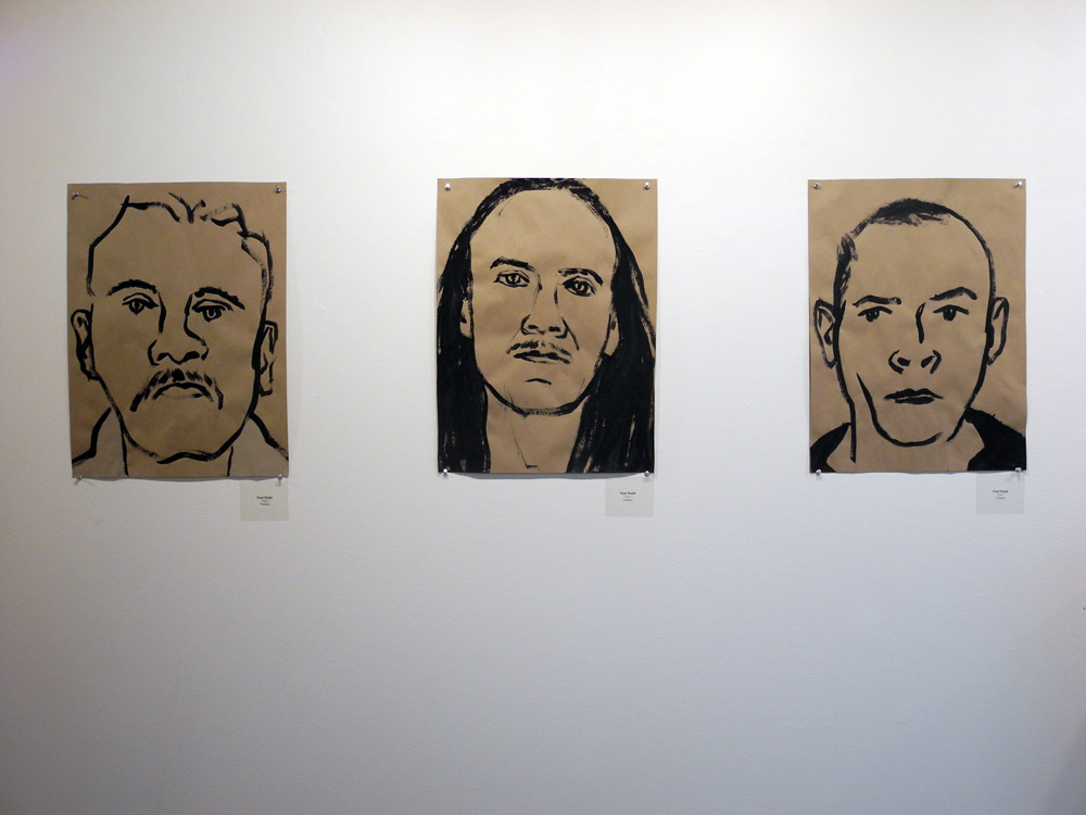 I have three pieces in the current “Drawing Show” at the Lucy Burne Gallery in the Memorial Art Gallery. My drawings were done with black tempura paint on brown craft paper. There really is very little difference between my drawings and my paintings. That is my paintings are closer to drawings than paintings. The only real difference in drawings like these and my paintings is that I can’t make corrections (unless I mix a batch of “craft paper” brown tempura paint) so the drawing has to work or I toss it. I did a small pile of these drawings for a few nights and would do more if I can find a way to do corrections on the misplaced black lines. I like seeing the corrections and the work that goes into the drawing and I miss that in these drawings.