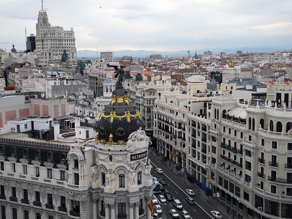 It’s going to be tough pretending we are still in Madrid. We spent our last day there following the yellow PhotoEspana route of top shelf photo shows. We spent quite a while at at the “Ron Galella – Paparazzo Extroaordinaire” show at El Círculo de Bellas Artes and then took the elevator to the top floor terrace where we had a sensational view of the city.