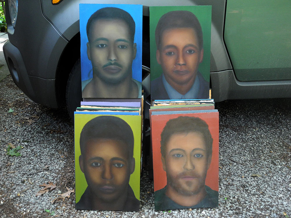I put my 1996 series of 24 “Rochester Crime Faces” in the sale. Last time they were out in public was when they hung in the old city jail, the Cell Gallery, in Writers and Books. Ruby Rubenstein, Scott McCarney, Marie Via, Claire Marziotti, Chris Schepp, Judy Levy, Amy Enis, Maureen Outlaw, Sally Wood Winslow and Heather Erwin all bought at least one. I was thrilled that they sold out.