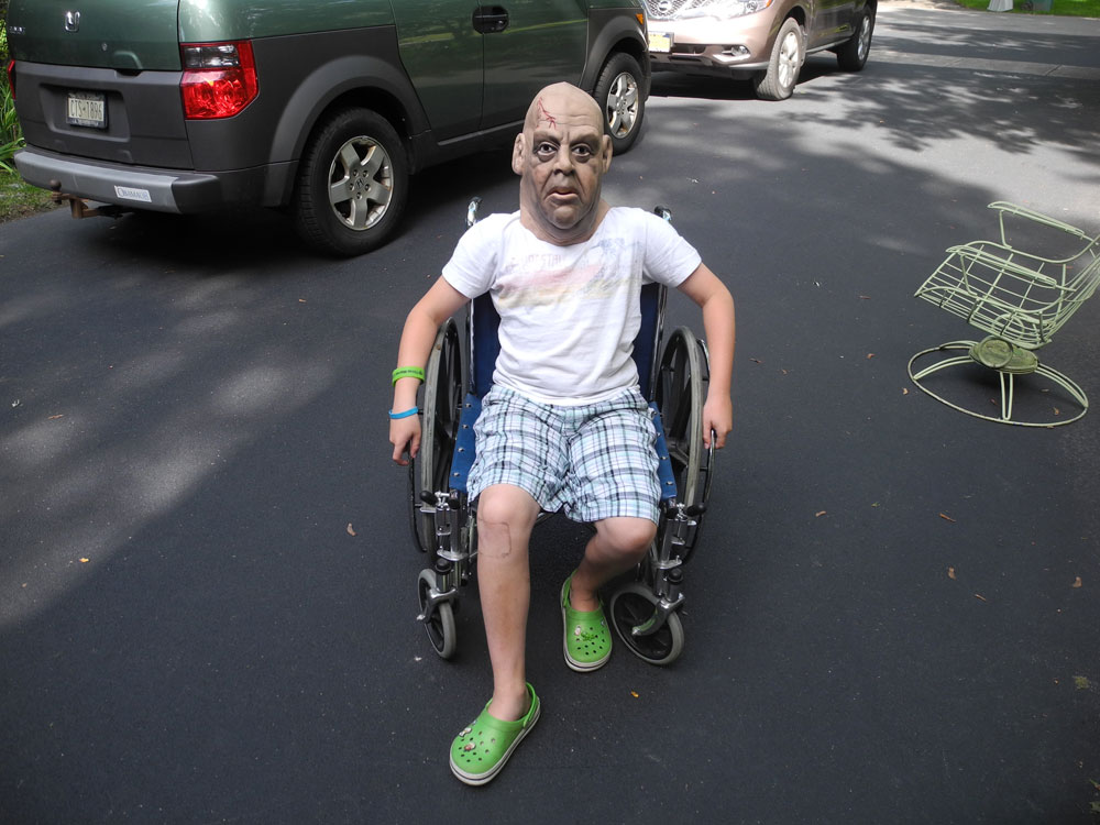 We found a Lena Horne cd in the cd slot of Peggi’s mom’s stereo and kicked the sale off with an operatic tribute to Peggi’s mom. We met Noah from next door and I gave him this mask while we were setting up. No one was interested in the glass table that belonged to Peggi’s mom so we put it out in the “Free” section near the end of the sale. Evan picked it up and put it in his sale where it sold for six dollars. We sold our entire music collection and were delighted to find happy homes for most of it.