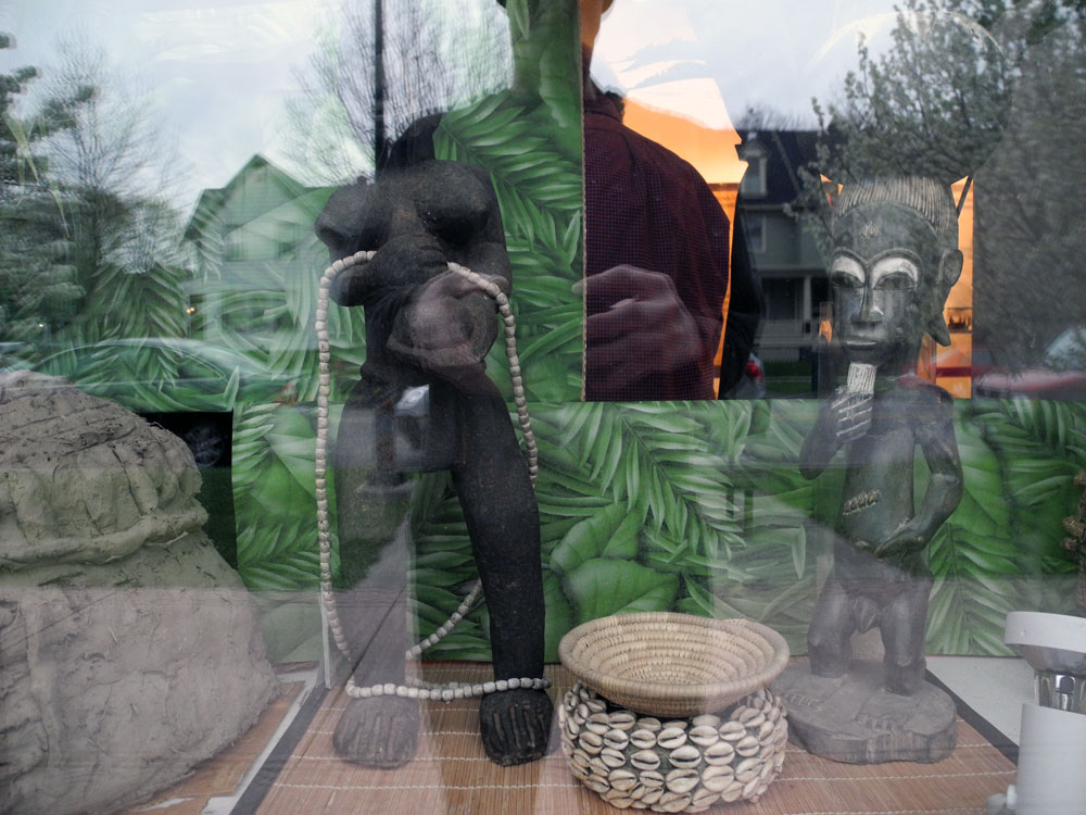Don’t you hate it when someone makes a point of noting that no Photoshop was used in a photo. Who cares? The camera lies and that’s why we like it. I snapped a shot of a statue in the window of the Baobab Cultural Center and wound up with this magical composition full of reflections I didn’t see.