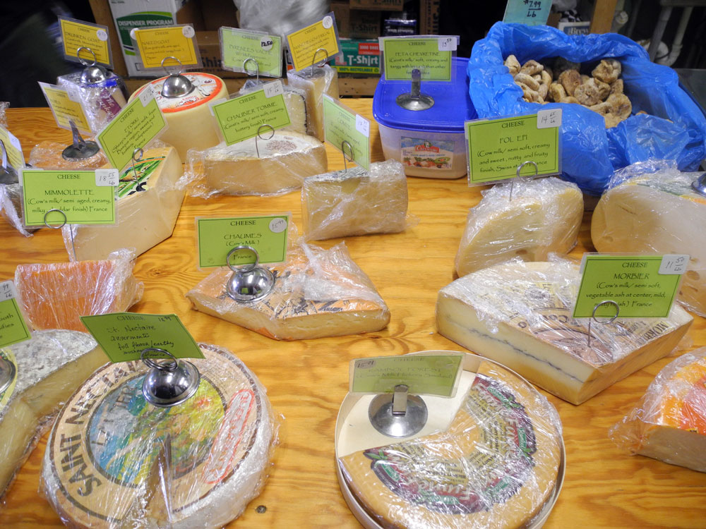Vincenzo Giordano runs the coolest spot in Rochester’s Public Market, the “European Cheese Shop.” You could spend your week’s paycheck in here and not be sorry. The yellow tags in this photo mark the Spanish cheese and the green identify the French cheese and the figs in the blue container are out of this world. There’s plenty of Italian cheese here too but we’re loyal to the to the Spanish. If the Spanish Civil War was to break out again we’d be over there fighting to save the Republic.