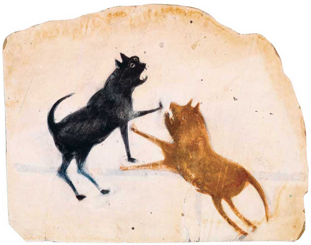 Bill Traylor was a master of placement of object on ground or substrate or laundry shirt cardboard or whatever he found to paint on. Perfectly placed to articulate and accentuate the gesture.