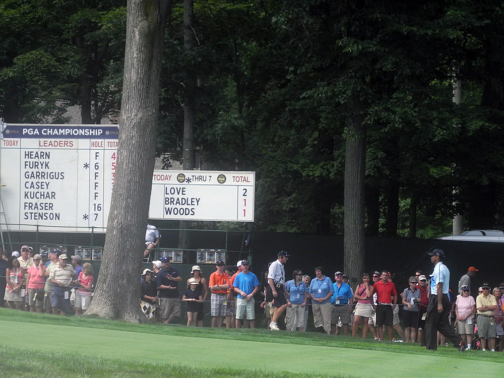 Golf brings out the worst in me but I couldn’t say no to the offer of free tickets to the PGA Championship so we drove to my parents, parked in their driveway and then rode our bikes to Oak Hill Country Club. There was a New State Trooper guarding the bike rack when we got to the gate. We followed the throngs on to the course and had no idea where we were or what was going on but we found that we could see quite a bit of action by just staying still. The acton comes to you as all the players are moving in big circles. Tiger Woods came to us.