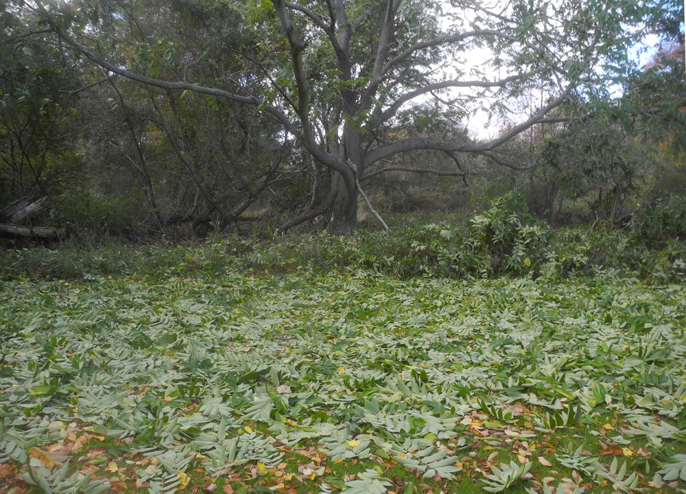 We walked by this same tree yesterday and its leaves were still on the tree. The spotty frost we had here, up by the lake, brought down all these same-sized branches, all at once. The leaves are still green, the tree is bare. Fall is over for this tree, just like that. None of the mucky-muck.
