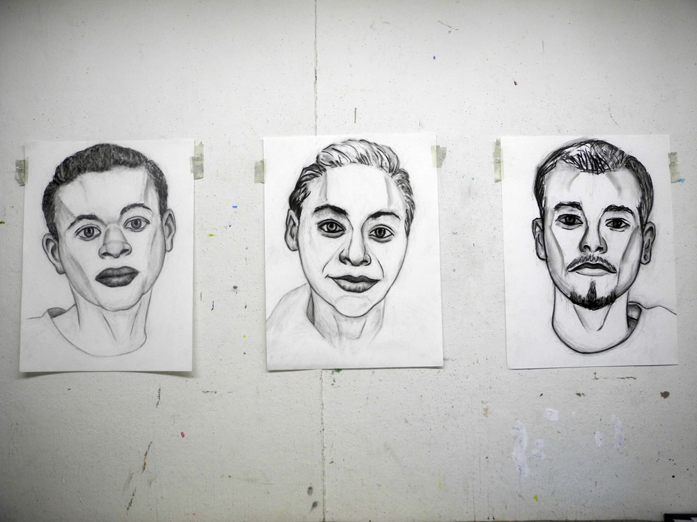 I was asked to submit a few pieces into an upcoming, juried show at ISquare so somewhere near midnight on the day of the deadline I sent along photos of these three local homeless kids. Truth is the drawings were not done and they have changed considerably since. I had them in painting class last week and I told my teacher that I had submitted the three but only two of them got in. I told him which one was rejected and he said, “That’s the best one. People like pretty. They don’t like expressive.”