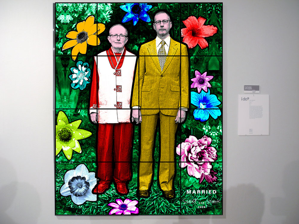 We showed up at Visual Studies just as they announced Scott McCarney as an award winner for his Gilbert & George piece, “Married.” That’s Scott on the right. He had one of his marvelous books in “I Do” show as well.