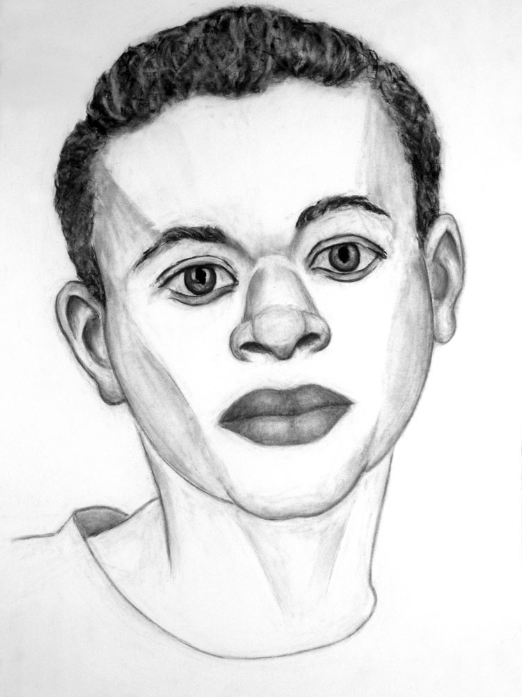 I set up my Lowel Tota light kit and used the soft umbrellas to reflect the light back on their faces. The photos were a lot richer than my usual low res mugshot sources. I did a few drawings with Tempura and then a set of oil paintings but I was never happy with them. In the past few weeks I have revisited the faces and produced a series of charcoal drawings. I have two in the Irondequoit Artist’s Exhibition at ISquare which opens tonight. The drawing above is not in the show.
