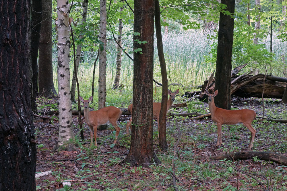 We watched a fox for a bit until he got suspicious of us and darted into a hole. And there is a crop of deer that just don’t have any reason to be afraid of people. But as we cut through the park we came across a large four legged animal not far from the “Dogs Must Be On A Leash” sign. His presumed owners were lagging behind. We cautiously watched the dog before proceeding and shouted up to the couple, “Is that your dog?” Well, the dog must have just taken a dump (we didn’t see that) because the guy then walked ahead and scooped something into a bag as if we caught them not picking up after their dog. We asked if they could put the dog on a leash and they said what every dog owner says, “He won’t hurt you.” I said, “We’ve been bit twice” and the woman said, “Maybe it’s because you act afraid.” I thought, “Fuck you” and said, “No, it’s because we’ve been bit twice.
