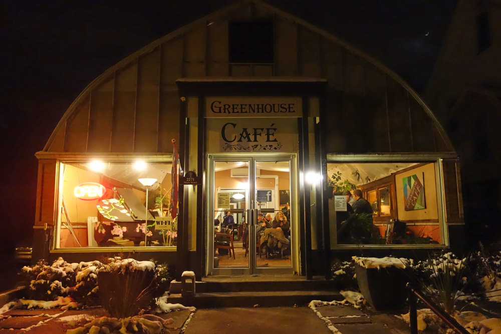 This weekend we caught the second set of The High Fallin’, a group made up entirely of WXXI employees, at the Greenhouse Café on East Main. With viola, keyboards, Matthew Leonard’s guitar and an excellent choice of material, the Band’s “The Weight.”
