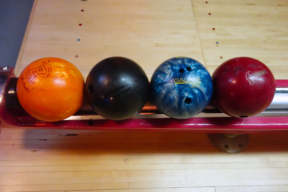 Louise wore her Hendrix t-shirt and she and Peggi were the only women in the place other than the owner’s sister who was behind the bar while her brother bowled. But they did have room for us tonight so we each picked out a ball. Louise chose a “Smart Ball.” It was so light it couldn’t fully return on the ramp that brings your ball back. My solid black ball weighed a ton and was labeled “Ebonite.” Peggi chose a blue sparkly ball called “Galaxie 300.” We laughed about that one because Louise’s bother played in a band called “Galaxie 500.” Matthew’s ball was nicknamed “The Hammer.”