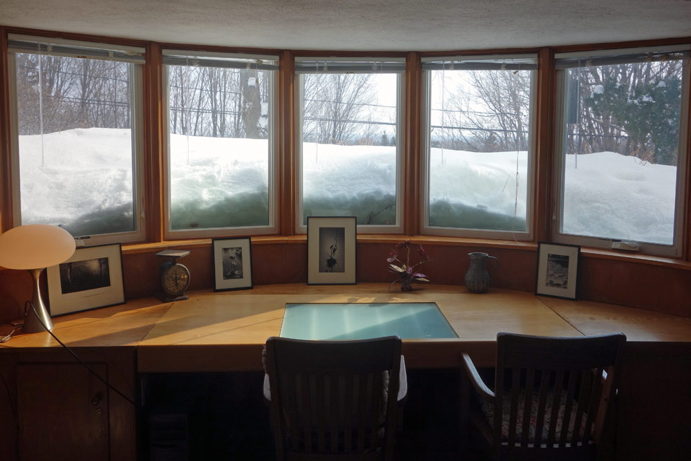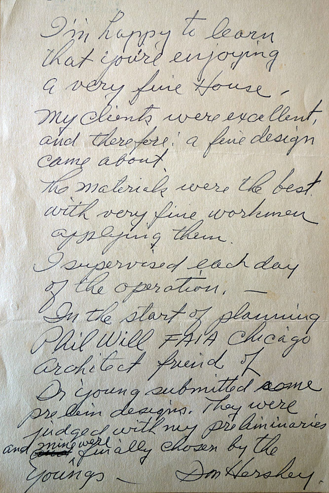 So we returned this Sunday and had a marvelous time. The realtor showed us this note from Don to the second owners. The place had all the classic Hershey signatures. Corner windows, floor to ceiling windows strategically placed to center the house, open plan kitchen space, curved walls, built-ins and lots of passive solar.