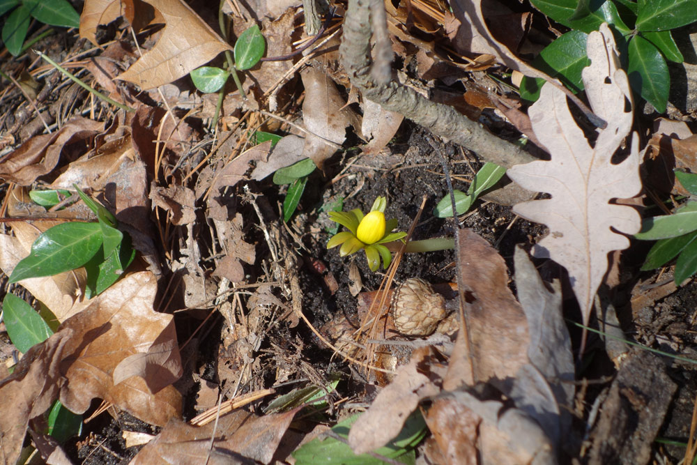 I was kind of jealous, seeing that picture in the paper of the Winter Aconite blooming on the front yard of the Eastman House. I have been looking for the ones we have in our yard but they are still under the snow. Just a few years back they were out on February 20th. I like thinking about them isolated by the snow, ready to pop with just a little sun. They are official Spring marker. Sure, the geese are squawking overhead, the witch hazel is out, the pussy willows are in bloom but the winter is not over until the yellow Winter Aconite pop. And I found this one out back today, a full month later than in 2012.
