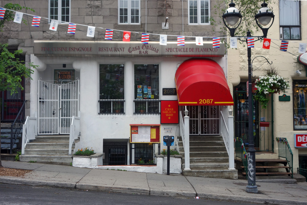 The Spanish restaurant, above, was right across the street from our hotel in Montreal. We stopped in the first night, after the game, and had gambas al ajillo. We sat at the bar chatted with the owner. He was originally from Ligo in Galicia and I think he was also the chef because he kept running back to the kitchen. When we finished our tapas he recommended a drink we had never heard of, “Sol Y Sombre.” Just like the cheap and expensive seats at a bullfight in the sun and the shade. It’s made with Brandy and Anise. We ate here the following night as well.