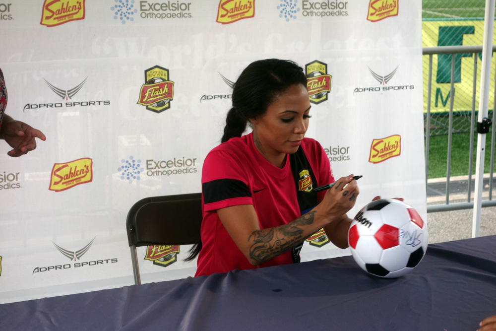 We got to the game especially early tonight. We are usually there early enough to see the practice rounds but tonight Sidney Laroux was signing autographs so we got there before six. The scene was something akin to the English invasion with all the high pitched screaming. Sidney opted to have surgery on her foot after the World Cup and is out for the season so the Flash put her to work with the pen. The nuns in my grade school would not have tolerated her grip but penmanship is so over.