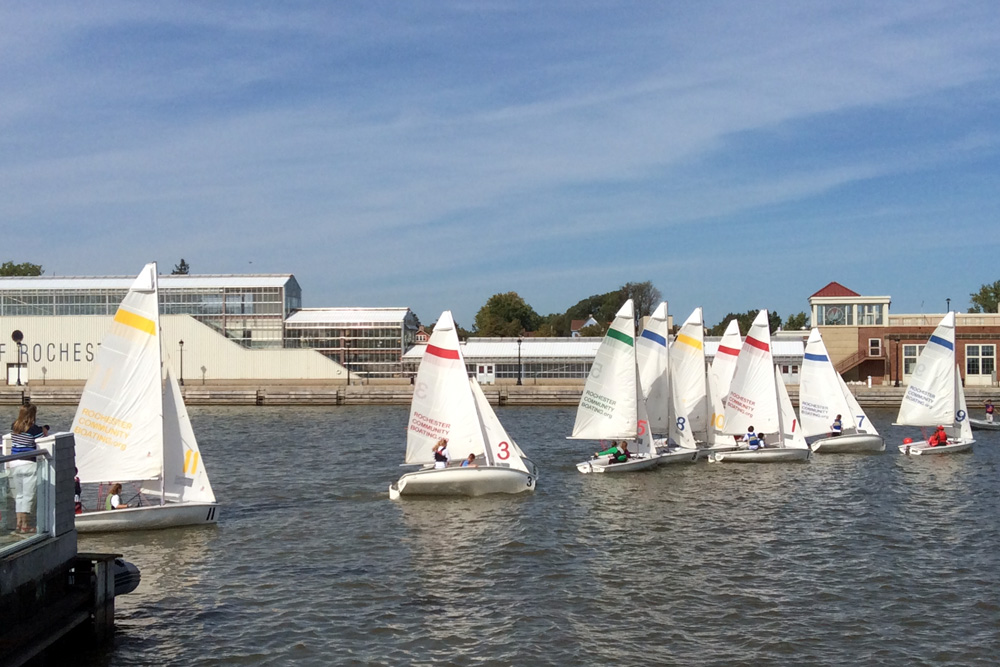 I talked before about Jeffery’s Saturday morning yoga class at the Rochester Yacht Club so I won’t recap how beautiful the setting is. I will point out how delightfully distracting the activity on the river is. The yacht club is built out on the river. It almost feels like you are on an island and boats sail past on all sides. The view is unobstructed even when you are on your back because the railing is clear plexiglass. (You can see a bit of it in the blow-up of the photo above.) Yesterday Jeffery had us put out our legs up the wall, the clear plexiglass guardrails, and we did a series of inversions.