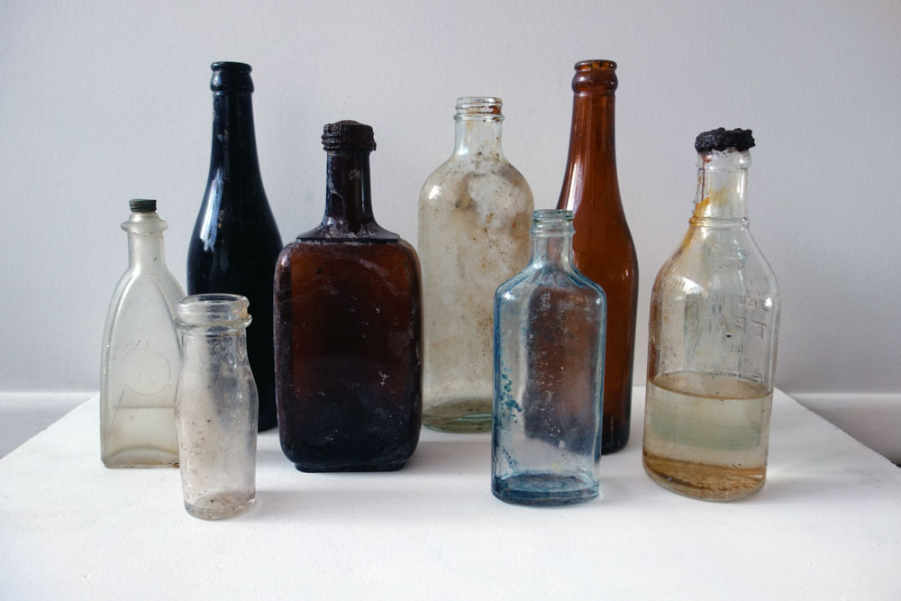 So here I am in my studio for the first time in months. The mattress my brother slept on when he was in town is still sprawled out on the floor. A series of paintings, half of them unfinished, line the walls. A short stack of them sits on the floor. The still life of old bottles that I shot to show my father is still staged theatricly on a piece of white panel board. I could paint them for the rest of my life the way Georgio Morandi did. On my work table I have about twenty sheets of purple, hand-made paper that Roy Sowers gave me. I forget what I was going do with them.