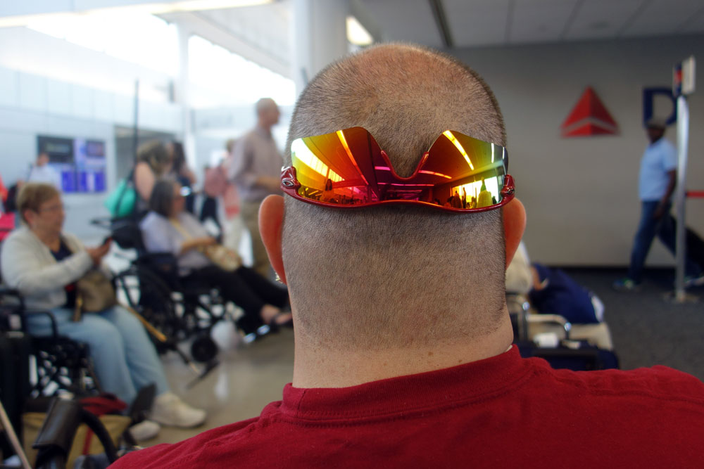 I hate everything about airports, the security, the expensive water, the waiting and mostly, the people. No one is at their best in this situation but these places seem to attract creeps. This guy was sitting behind me and I snuck a few photos of the back of his head.