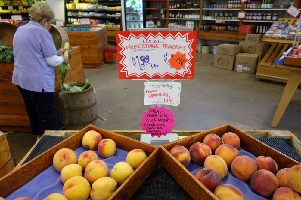 We had some peaches for dessert the other night and I said something about how good the local ones are and our friend, Jeff, told us a worker at a farm stand near him said “a late frost damaged all the peaches in New York State and if someone tells you they’re local, they’re lying.” Well, Aman’s Market is just down the road from the high school so we stopped in there next. We bought some more peaches and some prune plums. I planned on asking the owner if his peaches were really from Hamlin as the sign says but he wasn’t in. I’m ready to give them the benefit of the doubt. They don’t take Apple Pay though.