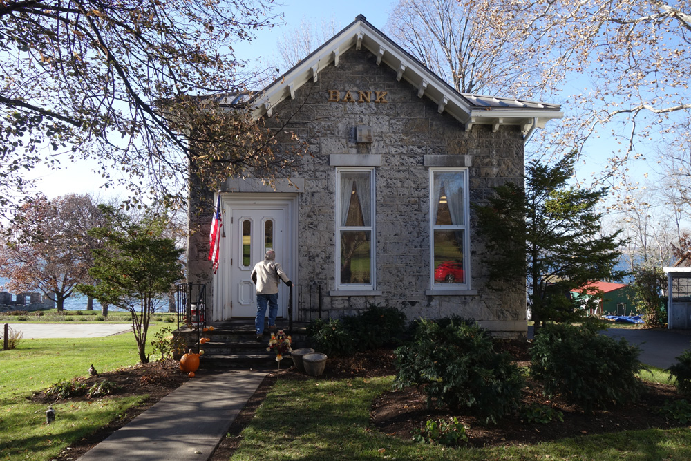 A sign on the outskirts of town read “Lakeview Cemetery.” I was trying to picture that view. Originally a major Cayuga Indian village called “Chonodote,” Aurora, New York was the furthest west town on the official US mail route in 1795. We had a holiday dinner fit for a king and queen in the Inn there and for good measure we stayed overnight. We walked around town from historical marker to historical marker. You have to walk to the outskirts to find anything that has not been lovingly restored. For kicks, we looked up the price of a large home on Cayuga Lake. It was over three million. The house in the picture above was built in 1840 and converted into a bank by Henry Wells, the founder of Wells College, American Express and Wells Fargo. This was the original Wells Fargo bank.