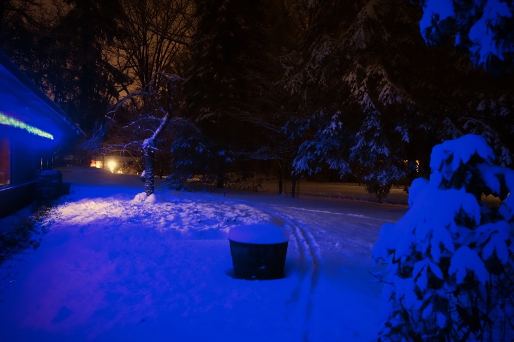 Peggi’s sister sent a photo up of her two sons on the beach in Miami where they have gathered for the holidays. Hardly looked like Christmas down there. That’s the best part about the day for me now and this is a good one. Cold and white. We skied out the door, through the woods and up to the lake. The sky was intensely blue and the wind was blowing so there were fresh drifts up on the ridge. When we got back my brother was in the driveway with his wife. We took a long walk with them. We like to think we’re in training to walk the Camino in April.