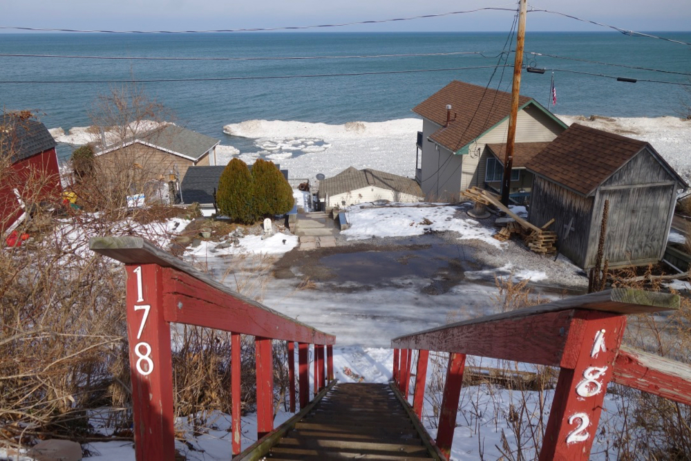 Point Pleasant Road, the third traffic circle on your way to the lake, leads to Pleasant Avenue which takes a dive down to the bay where it turns into Schnackel Drive which hugs the shore of Irondequoit Bay. You can wind your way around the inlet to the right or walk to your left around the gated Point Pleasant Estates and the opening to Bay Front Lane, a street with about fifteen homes that can only be accessed by foot. We’re guessing the store Jeff remembers was the first place on Bay Front Lane but we couldn’t find the liquor store.