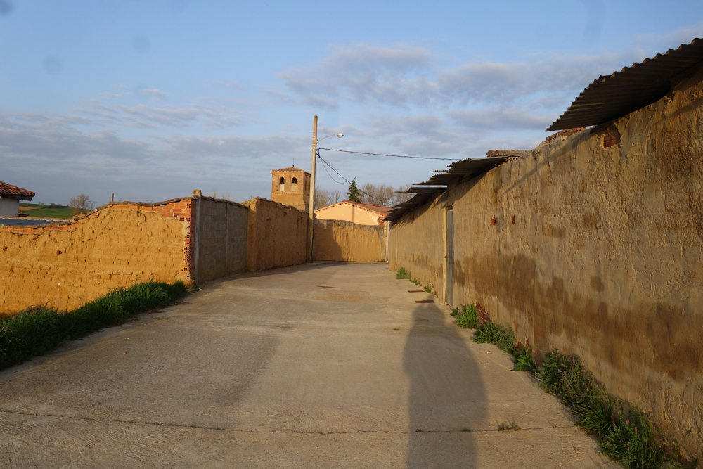 We walked right by the hotel we were looking for last night in Terradillos de los Templarios. It was at the very beginning of the town and we walked through it before realizing we had missed it. Leaving this morning was just as tricky. We got up earlier than we had before. We set the alarm at six and got on the road at 6:30 in total darkness. Peggi had the flashlight on her phone on. We were unable to get out of the hotel the way we came in. A big metal gate was closed and I coildn’t get it open. We finally found an exit and watched the sun come up behind us as we made some headway before the 70 degree sun set in. We have had a variety of weather. Snow, cold, wind, rain and now full sun.