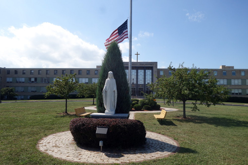 I went to two high schools. This one, above, is Bishop Kearney. We walked by there yesterday on our way to Starbucks. I like how the Virgin Mary, flag and cross on top of the building line up. I went here for two years and couldn’t wait to get out. Back in the day the whole left side of the building was for girls and we were on the right. The nuns and Irish Christian brothers lived on the top floor. The gymnasium was straight ahead and there was a little closet-like room between the gym doors where the brothers would take you and apply corporal punishment if you misbehaved. It was a Catholic thing. We had dinner with Martha O’Connor the other night and determined that her brother, Kevin, was in my class. I think I remember him. It was a long time ago. RL Thomas, where I went for my second two years, was a lot more memorable.
