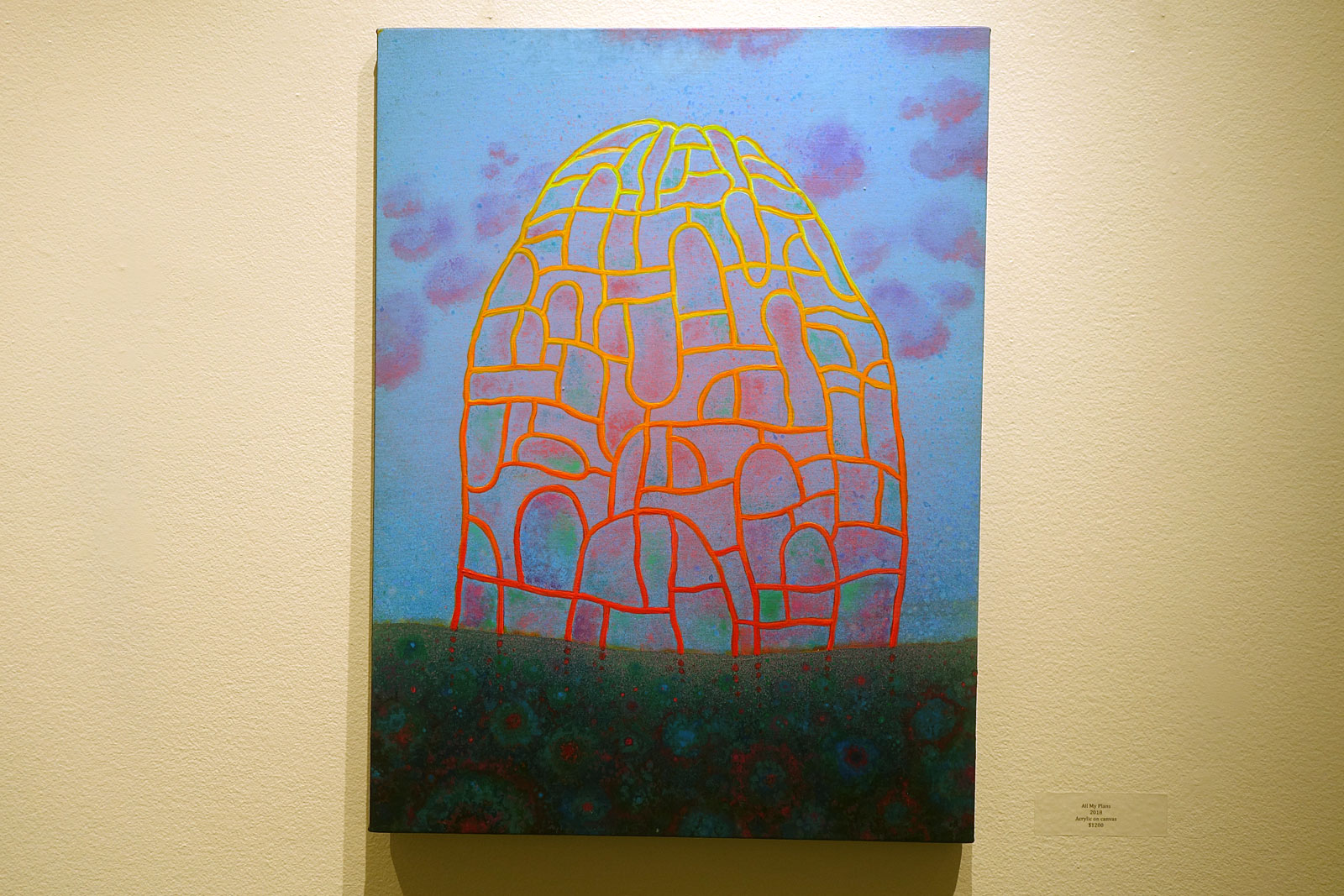 I particularily like this acrylic painting by Paul Brandwein at the Geisel Gallery downtown. Entitled “All My Plans,” I read his riotously colorful structure as big enough to claim the plans but too porous to contain them. And a reminder to pick your battles, let some things go and keep a few to kick around some more.