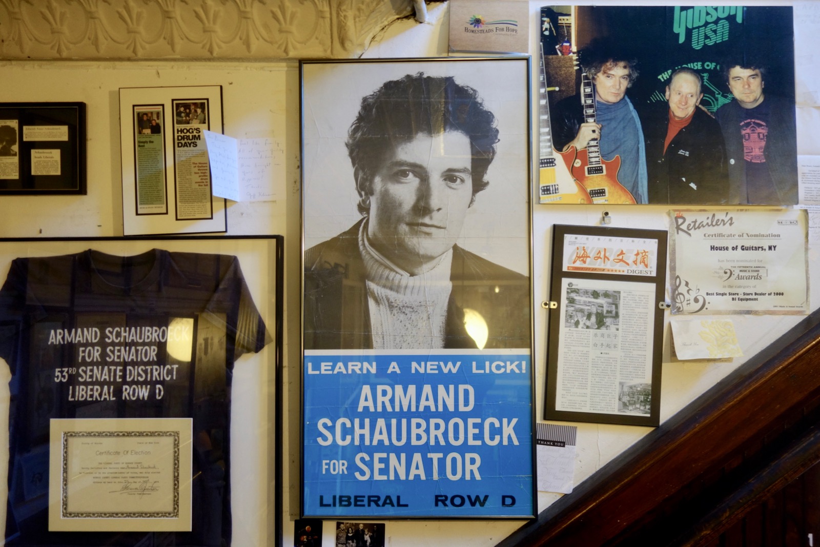 Upstairs at the House of Guitars in the far back corner of the building there used to be a mound of drum hardware. The peak was ten feet high and the pile spilled toward you like an art installation. Most of it was used, stands that were taken in on trade, but if you were lucky you might find just the part you were looking for. We walked over this afternoon and found Ethan Porter in Dick’s old space, working on guitars. And that pile is growing again but its over to the left.