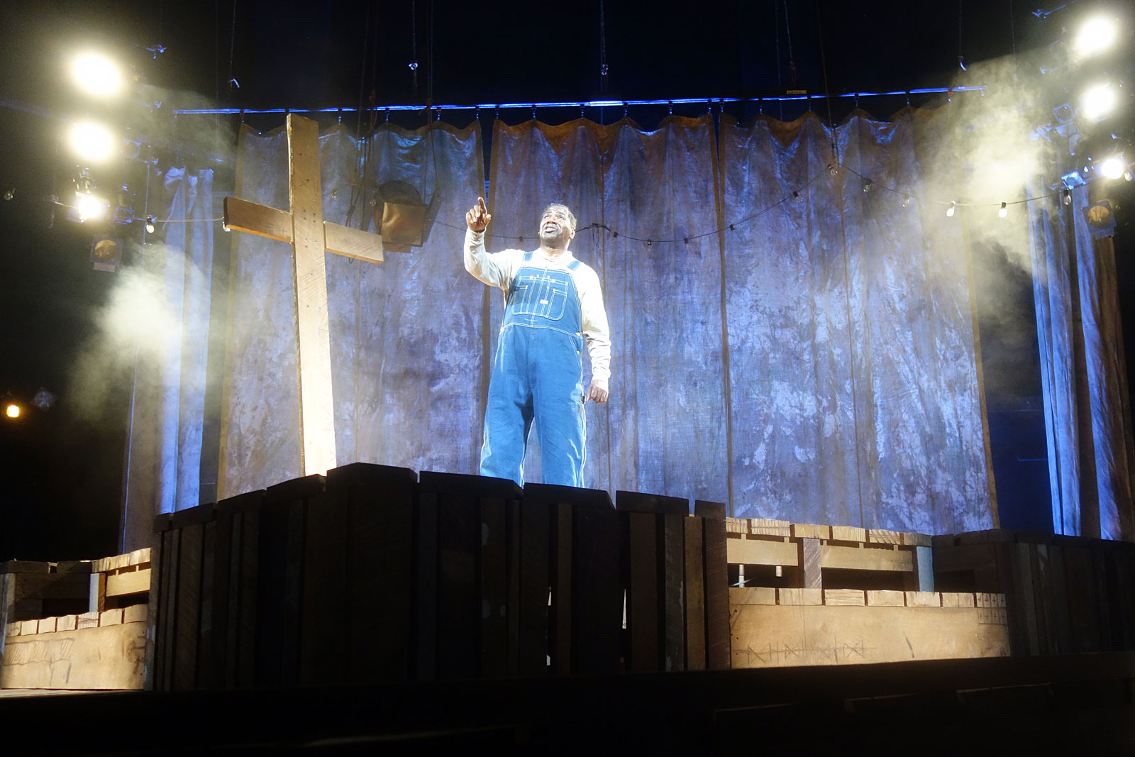 In 1943 Son House gave up music, left the Delta, and settled in Rochester’s Corn Hill neighborhood. He worked on the New York Central Railroad and drank. The production weaves history and and context into the Son House story and it has a terrific four piece band. Billy Thompson, who cowrote the music, is an astonishing blues player. Tad Wadhams is an incredible bass player. The are supported by Daniel Kelly and Rochester’s Fred Vine. I suspect/hope “Revival: The Resurrection of Son House” will hit the road after its run at Geva.