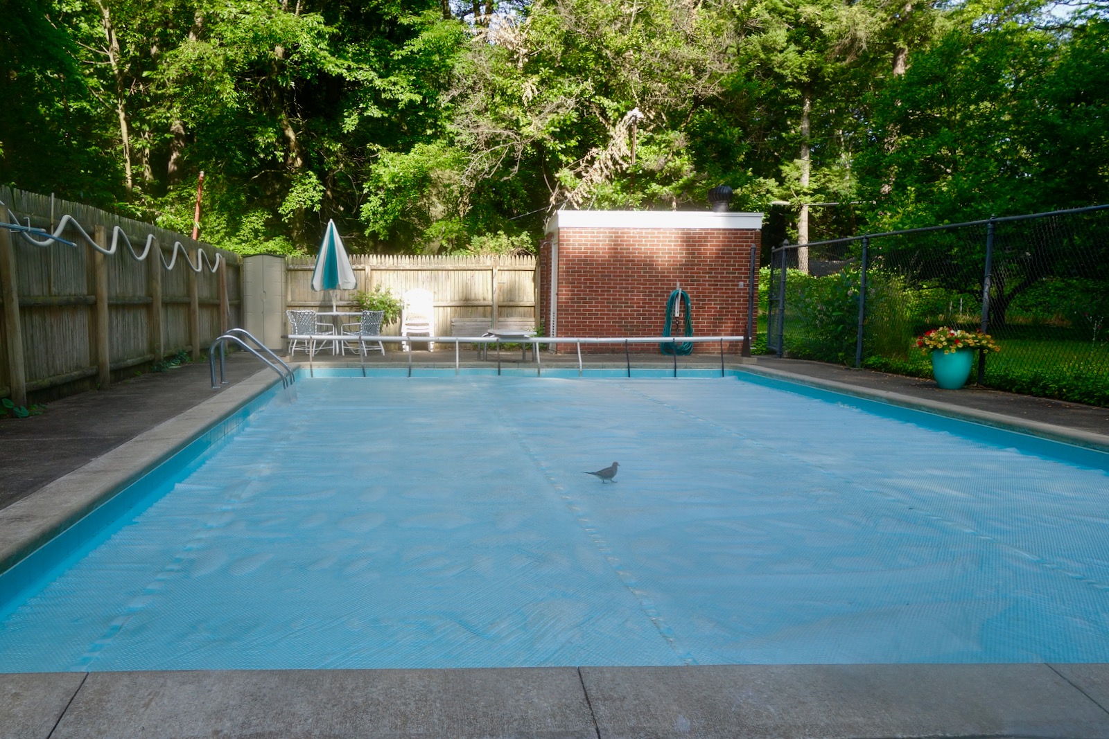 We were down at the pool before the sun was up this morning, forced out of our house while Town & Country treated the perimeter for carpenter ants. It is supposed to be non-toxic, a synthetic concoction of chrysanthemum and oyster shells. He doesn’t even wear a mask. But that’s not saying much. We brought the papers, our devices and a pot of coffee down here while he did his thing.