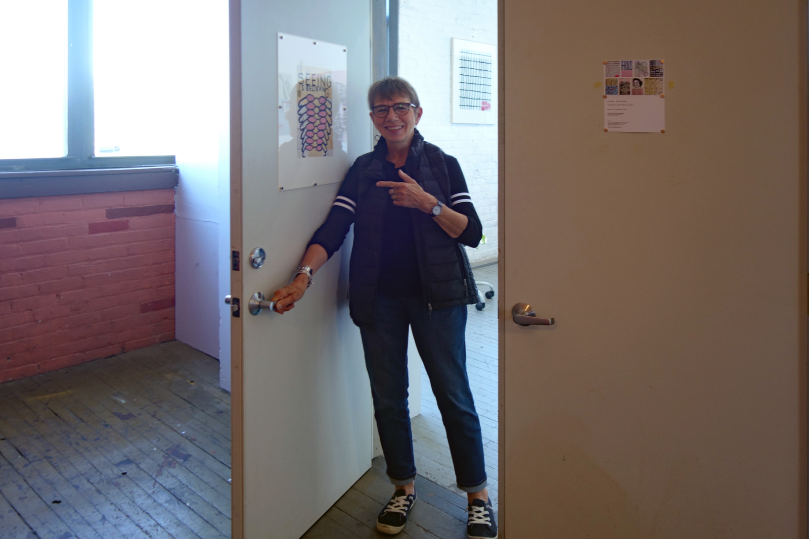 I didn’t know Ronaldo was named after Ronald Regan. I think that was our first topic of conversation when we met Anne Haven’s at Colleen Buzzard’s studio this afternoon. It was a mini closing party for Anne’s show which comes down this weekend. After climbing four flights of stairs in the Anderson Alley building you are rewarded with three delightful pieces hanging in the hallway. They set the table for what’s inside.