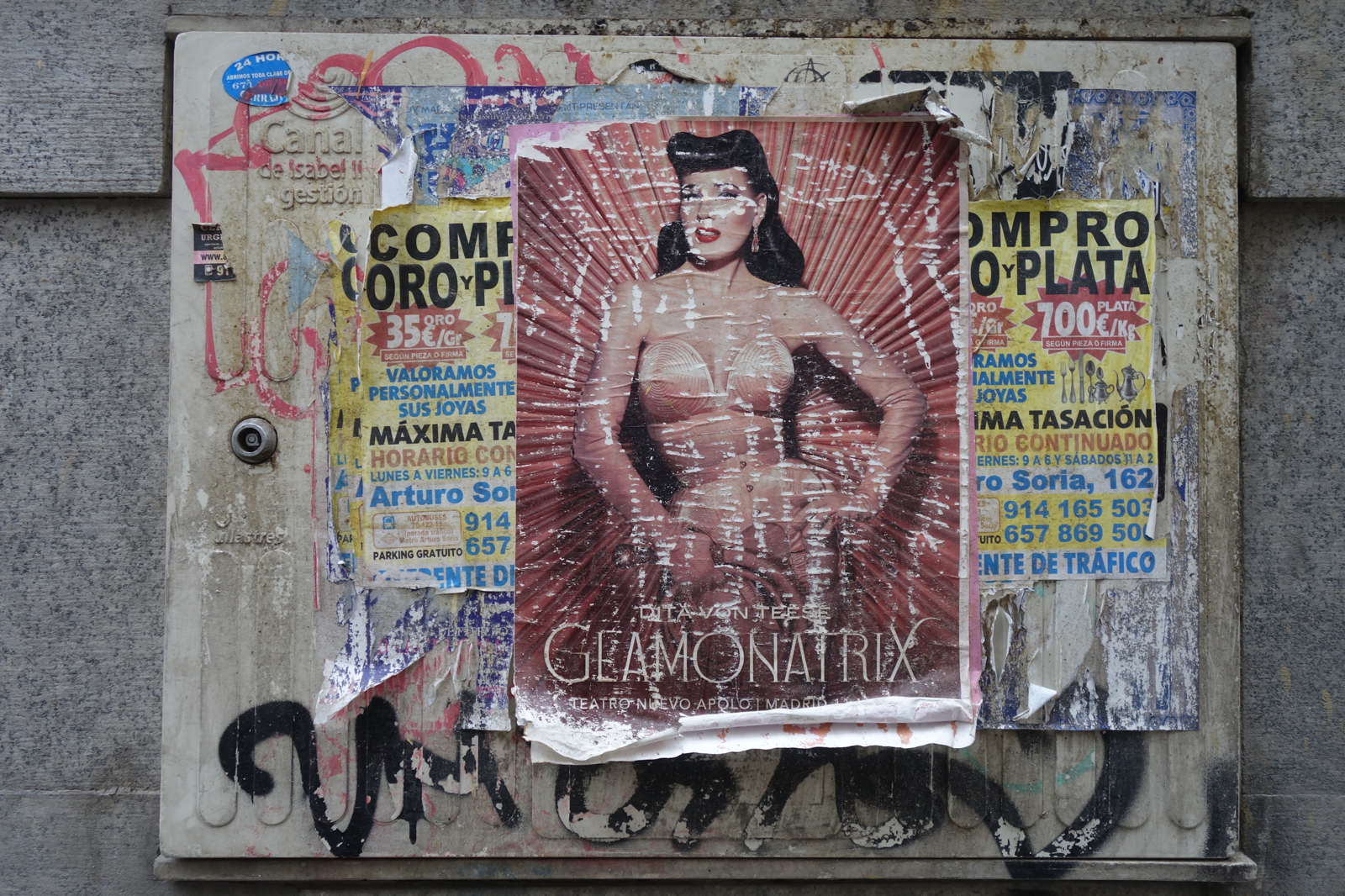 Just yesterday we were introduced to Sara Ramo and today we saw another of her shows at Madrid’s contemporary art museum. This one a video installation, a dreamy short play that was staged behind her beautifully composed tapestry-like curtain. The curtain never rises fully so many of the characters are only seen from the waist down. There are overtones of violence against women but of course the women win the day with their resourceful feminine earthiness. And just as the show yesterday was weighted equally with playful pieces, a room here was lined with cabinets which had all sorts of surprises behind their doors.
