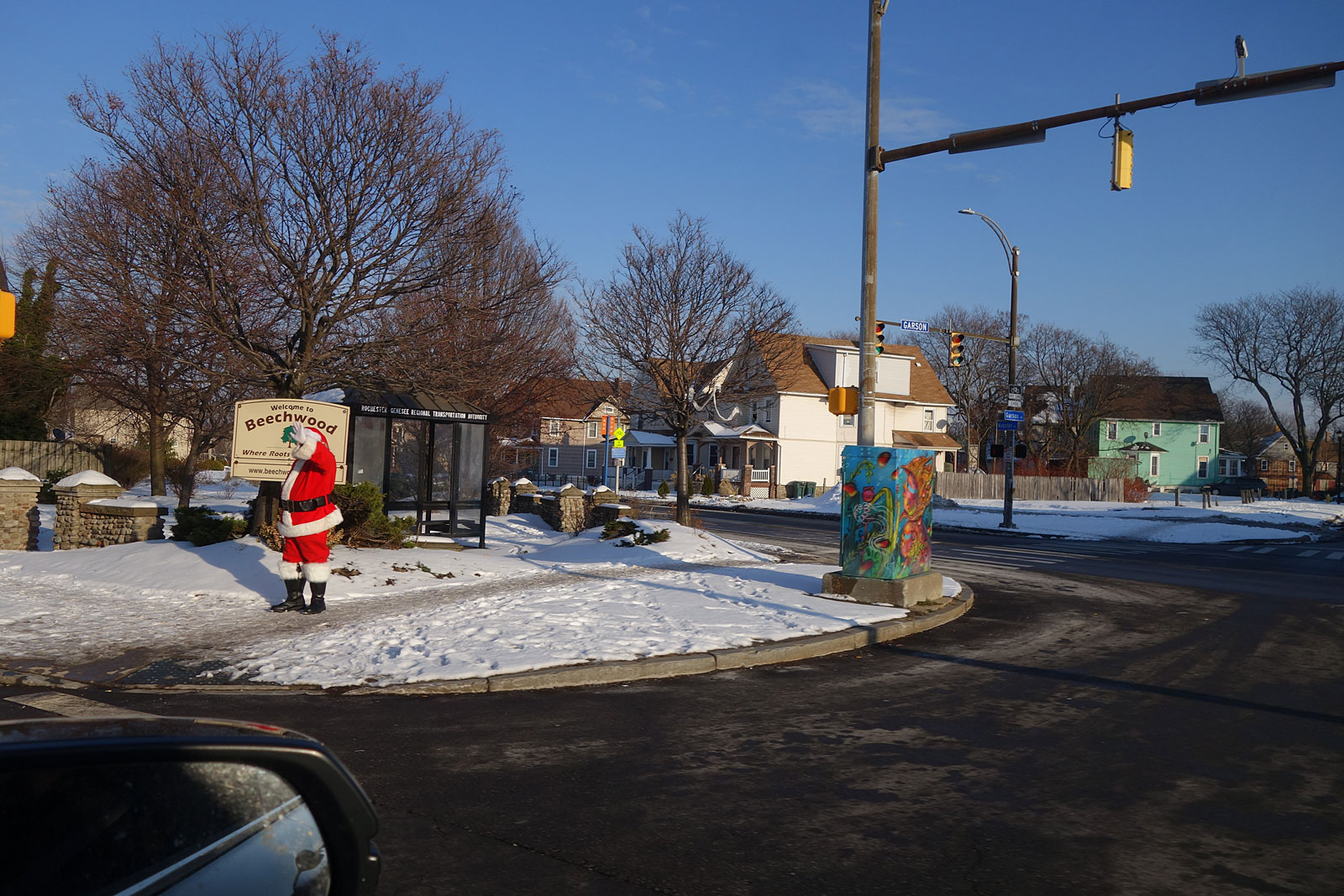 I discarded this picture at first but couldn’t let it go. Peggi was driving and I saw Santa up ahead on the corner where Webster splits off of Goodman. I rolled down the widow, just like I did with anti-vexers in a post from a few days ago, but then I mis-timed the shot and failed to get Santa’s attention.