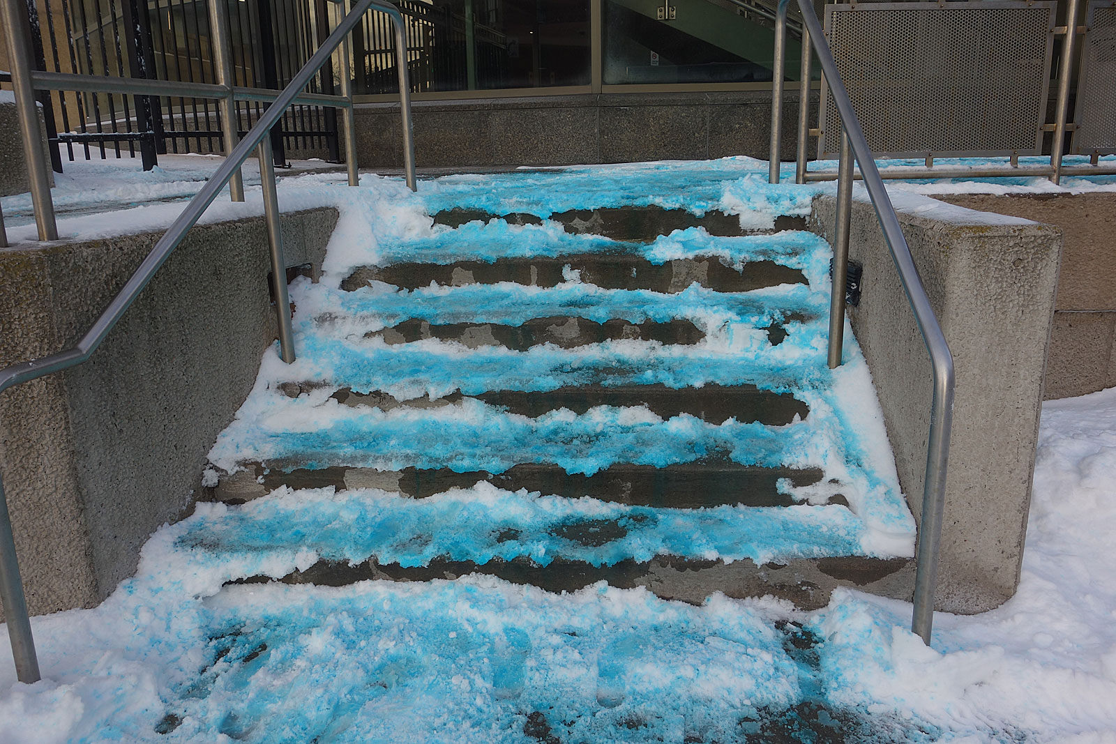 Peggi dropped me off in front of the Hall of Justice this morning. I was bracing for the worst. They couldn’t even get somebody to shovel the walk. They just threw this blue chemical on the snow and waited for it to melt. I was here for jury duty, called back after only four years because I had weaseled out of the last one. It was the middle of summer, I was shuttling my father back and forth to doctors and they picked me for a trial they expected to last three more weeks.