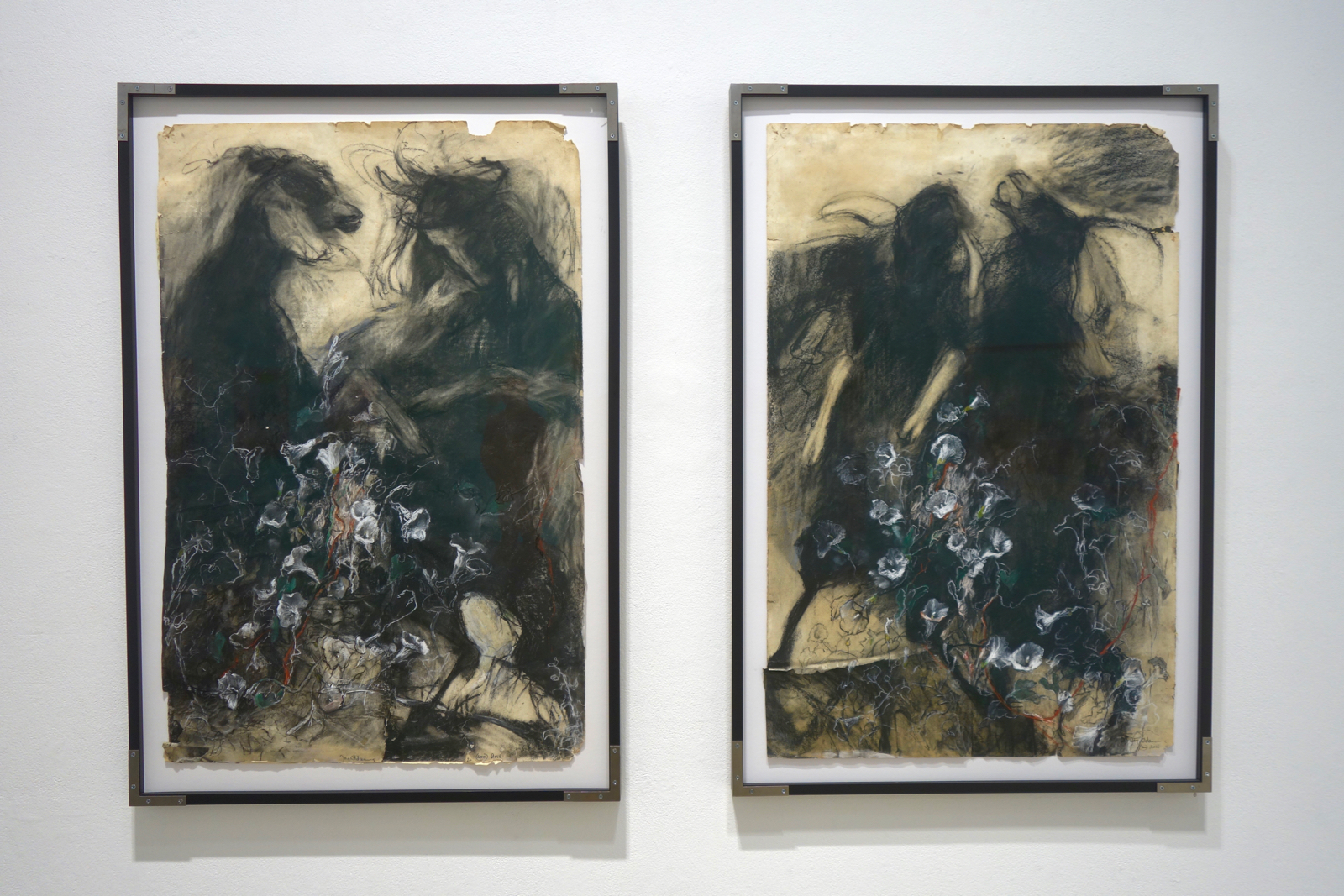 Joy Adams did these two drawings from memory. They are a tribute to Ducky, a goat she owned for years but had to get rid of. She called him a soulmate and says “in a former life he might have been my husband.” The drawings are featured in Rochester Contemporary’s Makers & Mentors 2020 exhibition and Joy gave an artist’s talk this afternoon along with one of her former students, Lin Price.